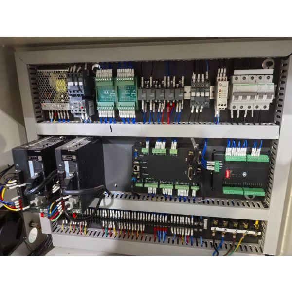 5. Fiber positioning for folding and gluing to reduce gluing errors. Servo pushes the cardboard with glue on front and back to reduce photoelectric eyes error, which can make glue more accurate.
